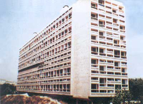 1922年柯布西耶提出了 “现代城市”的构想,现代城市是由高层住宅区组成的中心城市,区与区之间由道路网连接。柯布西耶对集合式或经济式住宅的构想是以单独实体概念为基础组合而成的,这种模式提供了私人空间,中心服务区域、商店以及集中公共区域等。他1927年的魏森霍夫住宅(Weissenhof Building)和1946至1952年的马赛公寓大楼(Unite d'Habitation at Marseille)使他的想法成为可现实。