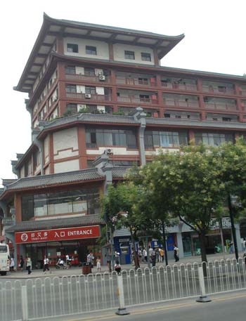 一是现代建筑的多元探索。在广大的城市新区,城市规划对建筑艺术无特定要求,可以比较放手地进行现代建筑的多元探索;突出现代生产技术与功能的“产品形式”和强调反映所在地域特色的“地域形式”(民族形式)都可以发挥。现代建筑地域化(民族化)与地域(民族)建筑现代化的途径正在成为当今关注建筑文脉的建筑师创作的主流。这类建筑创作的走向更多取决于业主的要求和建筑师的意匠。以西安为例,在新区建设中“产品形式”居多,但一些文化、教育、政府行政的建筑则是地域特色与时代感并重。