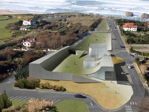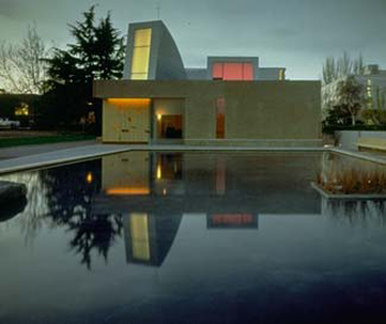 在基地上有3眼泉水灌成的水池和4座现有的水泥坝。水泥坝保持了池中的水位,并形成了几处小小的瀑布。溪水缓缓地流过,整个基地充满自然的声响,也产生出音乐中用于搭接的效果,成为外部景观空间重叠的反映,和内部空间虚拟重叠的反映。霍尔的构思来自于巴拉克(Bartok)的一首“接叠式”(stretto)结构的曲子,以此来模拟潺潺的溪流。在建筑造型上,再现了周围景物的特征。金属框架的“水波式空间”流过一系列钢筋混凝土的“空间坝”,创造出与“接叠”相类似的空间类似物。巴托克在其作品《弦乐、打击乐、钢琴合奏》的音乐主题中分为轻(弦乐)和重(打击乐)的两个部分。音乐有乐器和声响的效果,而这栋建筑则突出光线和空间的对比。用霍尔的公式表示就是: