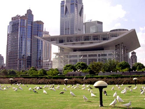 民主国家的国会议事堂是国家的中心。在中国,人民大会堂也占据了民主的象征性地位。民主革命以前,中心位置的政府建筑常常构成中轴线,建筑形式也是权威性的。但现在的民主时代,大部分国家的政府建筑越来越采用开放的、非权威性的、以市民为主体的建筑形式。在西方新建的政府建筑中,很难的找到硬直的对称形式建筑了。中国人民大会堂位于天安门广场,虽然对称形式,但是比较开放的,采用了当时社会主义国家的通用的方法。可是最近建立的上海市人民政府建筑也在人民广场中轴线上,采用严格的对称形式,在对人民排斥的同时营造出闭锁的气氛来。这难道是人民政府的人民性吗?纵观东西古今历史,对称形式的建筑常被用于具有权威性与象征性的建筑,在近代社会以前政府中心建筑似乎绝对的采用这种形式。但是,经历了以人民为中心的民主时代以后,对称形式建筑已经不是市政府建筑的代名词。对称形式只是需要强压的权威的专制主义的产物。可是现在中国大部分城市的政府中心建筑仍然采用对称形式作为权威的盾牌。市政府建筑对于人民不应是威胁性的,它应该贴近民心。那些为强调权威用笨重的石头打扮的市政府中心建筑不能温柔地安慰人民的心灵。