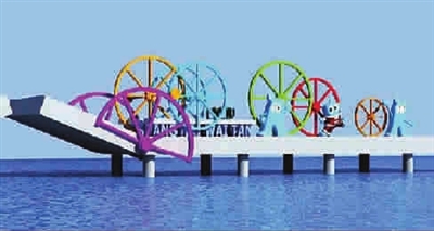 功能雕塑之所以成为现代城市的发展,因为它既完美了城市景观,又反映了这个城市人群的科学理解和创新能力。笔者在上海世博会期间被相关市政部门邀请去做过一个防汛安全的机械设计方案,这个装置位于苏州河河口的外滩,它要用机械动作去完成二闩十二米长总四吨重的防冲撞门的启闭,我也试图把它做成一个城市功能雕塑。我从废旧机械零件构建城市雕塑的创意中得到启发,在设计时将轮系最大直径放到十二米,构成像机械零件的一种堆砌,并认真考虑了与外滩景观的尺度关系,配以艳丽色彩,在岸上看去犹如一组奔腾的轮子,达到表现上海老工业基地的寓意。