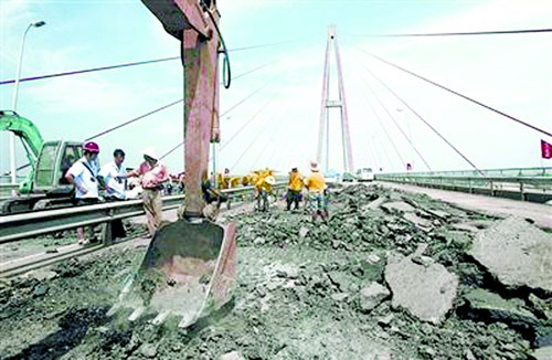 武汉白沙洲长江大桥建成10年间,先后经过24次维修,平均不到1年要修两次,成名副其实的弱不禁风的“豆腐渣”工程。