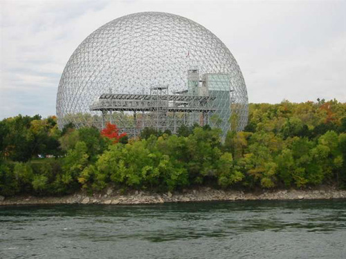 富勒最靠谱也最著名的发明诞生于50年代。他向美国专利局申请一项专利,将建筑的穹顶设计成圆形的。他将其命名为“网球格顶”:“……评判建筑结构优劣的一个好指标,是遮盖一平方英尺地面所需要的结构的重量。在常规的墙顶设计中,这数字往往是2500公斤/平方米,但是‘网球格顶’的设计却可以用约4 公斤/ 平方米来完成这一设计。我用一块塑料皮就能造成这样一个结构。”这样的设计现在已随处可见。然而这种不需要柱、梁、拱顶等支撑物的建筑模式在当时遭到很多人的怀疑。它第一次是被运用在了美国空军位于北极圈内的一处雷达站上。很多工程师打赌这圆顶很快就会被大风吹倒,但是两年测试期满,它安然无恙。1967年,蒙特利尔世界博览会的美国馆被富勒设计成了20层的高圆顶建筑,人们亲切地称其为“富勒球”。也就是从那时起,球形建筑开始在全球流行开来,一直方兴未艾。它造价低廉、建造迅速,印度的一家公司为非洲的农民制造了几百个圆形帐篷,用于当地的可持续发展农业;卡特琳娜飓风过后,灾民也都住在根据富勒的设计原理建造的临时帐篷里。