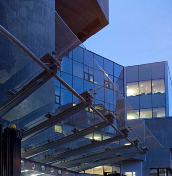 与此同时,为了解决大面积玻璃能量损失过大问题,中空玻璃、镀膜玻璃等相继出现。发展到本世纪,甚至出现了智能玻璃。智能玻璃能感知外界光的变化并做出反应,它有两类,光致变色玻璃和电致变色玻璃。前者的特点是,在光照射时玻璃会感光变暗,光线不易透过;停止光照射时,玻璃复明,光线可以透过。在太阳光强烈时,可以阻隔太阳辐射热;天阴时,玻璃变亮,阳光又能进入室内。而电致变色玻璃的特点是,将玻璃镀上导电膜及变色物,通过调节电压,使变色物质变色,调整射入的阳光。不过,因其生产成本很高,目前尚无大面积使用。