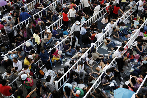 世博门外苦苦等待的人群(图片来源:百度)