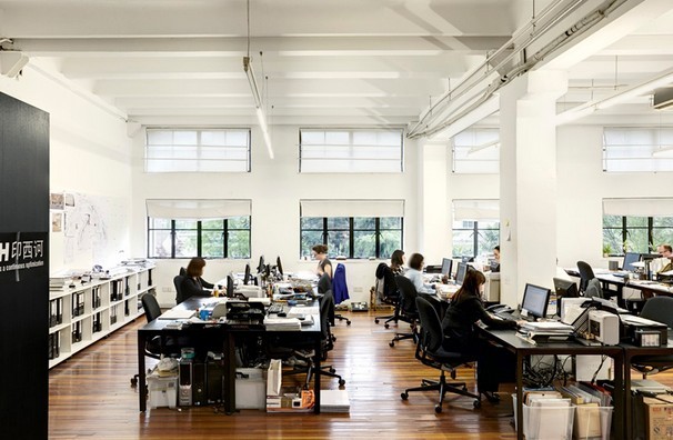张西的建筑设计事务所印西诃 EXH Design 位于江宁路上的一个创意园区内,是 loft 风格的白色空间。