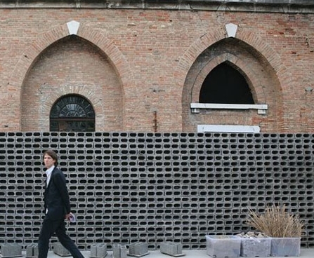 2008年威尼斯建筑双年展上,2×15m长的再生砖墙矗立在中国馆中,这些砖将震区的断壁残垣重新利用了。