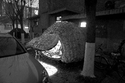 由于难以接受在北京租房的房价,戴海飞跟表哥借了6400多块钱,作为买材料的成本,在几名学弟学妹的帮忙下,忙碌了一两个月,造出了这座蛋形小屋。国庆节结束后,戴海飞花了三千多元,把小屋从老家运到了公司楼下。白天,他在公司里工作、学习,晚上12点,从楼上的公司下来,钻进小屋睡一觉,早上8点起床,上楼就是公司。只是进入冬季后,小屋越发冷了,晚上大概只有3、4℃。“我有蓄电池,每个月到公司充一次电,晚上冷了就用电热毯。不租房,我也是“月光族”,但我的生活质量明显提高了。”戴海飞说,他已经在小屋里住了快两个月,因为没有房租的负担,现在,他偶尔还能去咖啡厅享受“小资生活”。(以上报道来源于新京报)