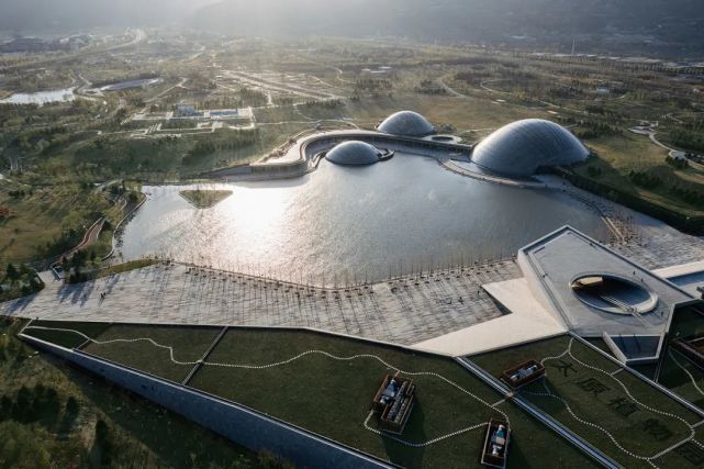 太原植物园位于太原市晋源区太山脚下,建筑群的核心部分为三座温室,外观为三个半圆穹隆,由木格栅制成,精确地嵌入在地形之中。温室的建造需要将能源设计