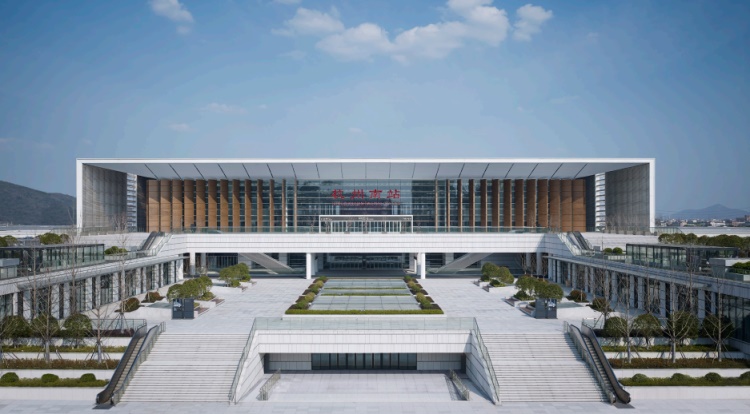 杭州南站位于钱塘江南岸萧山区。 其设计理念从已有铁道线路和城市规划布局出发, 形成一个不辩自明的清晰结构。 建筑主体由两个基本元素构成 : 一座