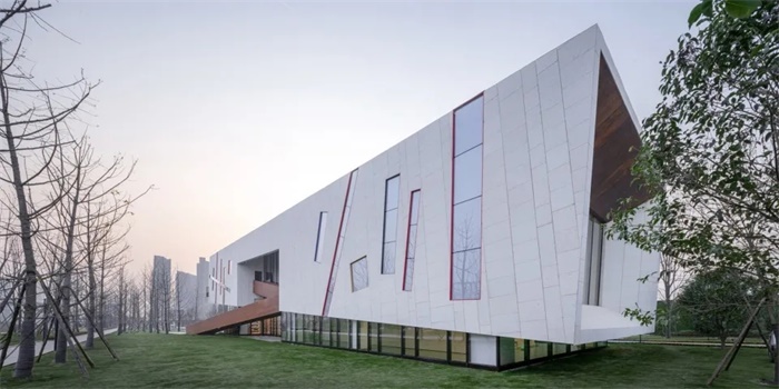 本案建筑形态就好似一个具有未来气息的“宇宙飞船”。而建筑空间的打造,则进一步强化“宇宙飞船”的教育意义。本案具备科技体验馆及社区中心两种功能,相