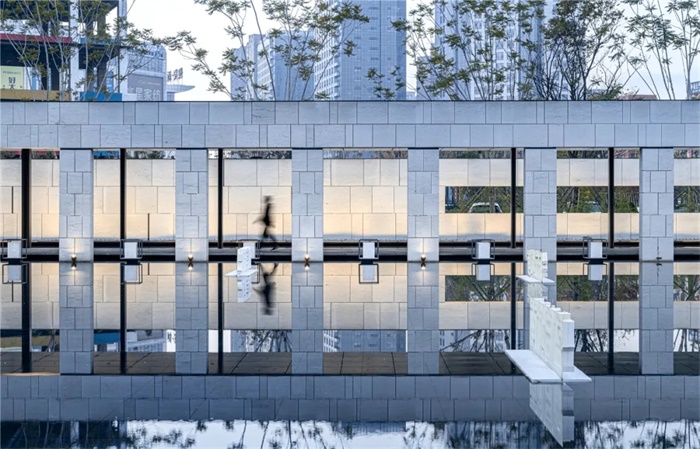 新螺蛳湾中心是政府主导下在旧螺蛳湾升级改造的城市更新项目。项目原建筑曾用于住宅销售中心,其外观陈旧,空间形态中规中矩;但紧邻中央湖公园的地理优势