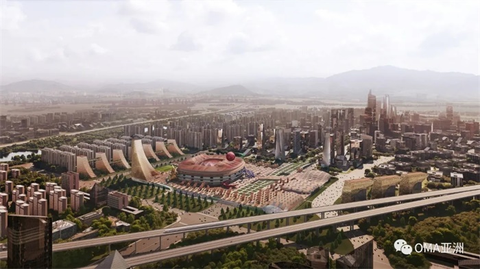 在本次国际足球中心设计竞赛中,OMA提出了一个考虑了项目两种状态情形的建筑方案,旨在:第一,成为一座可容纳六万二千名观众、符合最高国际标准的现代