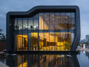 Aedas设计的莱安集团品牌展示中心位于城市中轴线和雁展路的交汇处,这个互动式的展览中心充分展现了开发商LAND对西安土地开发的前瞻性视野和发展