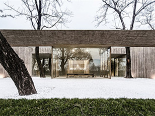 这是一个供人参佛、静思、冥想的场所,同时也可以满足个人的生活起居。建筑的选址在一条河畔的树林下。这里沿着河面有一块土丘,背后是广阔的田野和零星的
