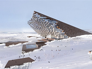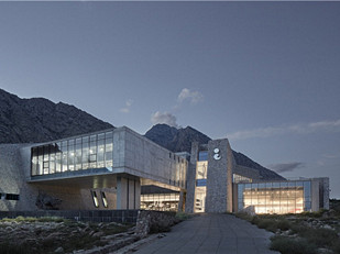 在建筑远眺黄河及黄河滩湿地的基地环境条件下,主题酒店的设计试图达到观景最优的标准,内部的大厅与外部景观是相连接的,使景观内外呼应,酒店最佳观景面