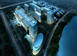 建筑设计从城市角度出发,尊重周边自然环境特点,对场所做出了积极的回应。整个厂区主要功能为科研综合楼、两幢厂房、食堂以及两幢员工宿舍,各幢单体根据