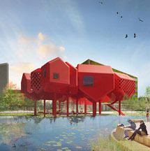 我想让这所中学就成为一片森林,无论是教室宿舍,还是球场食堂全部打散、七零八落,淹没在树林里。学生能在各种犄角旮旯里找到自己的领地。你可以有安静读