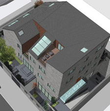 本项目位于北京宋庄艺术区,位于一个大院内,院内都是每户一亩的艺术家工作室,在紧凑的场地内需要保持私密性,所以我们把南北的露台全部移到中间部分,另