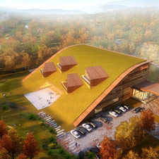 中弘长白山展示展览中心位于吉林省漫江镇,以展示,洽谈接待和签约功能为核心,并具有开展活动,商务休闲等提升功能,同时涵盖财务办公等辅助功能。建筑造