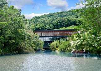 私人会馆树木植被良好环境优美。通过景墙和建筑围合出大小不同适人尺度的庭院,保留基地内的原有树木,建筑的屋顶和平台也成为景观的一部分,建筑和景观相