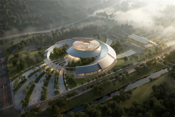 项目位于井冈山山脚之下、罗浮镇江南立交下闸道口,总用地面积约6.7万平方米,总建筑面积约1.9万平方米,包括新建自然博物馆和原客运服务站改造建筑