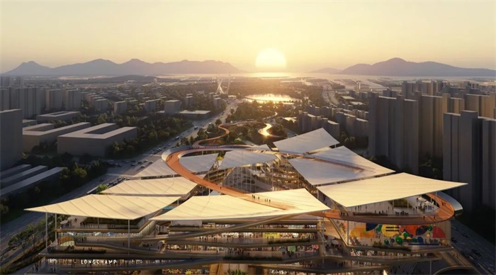 通常场地的特殊性及复杂性也构成建筑的前置标签,此次设计对象为宁德蕉城区入海口的商业综合体,处于城市绿肺的延伸轴线上,同时具有优越的景观视野。设计