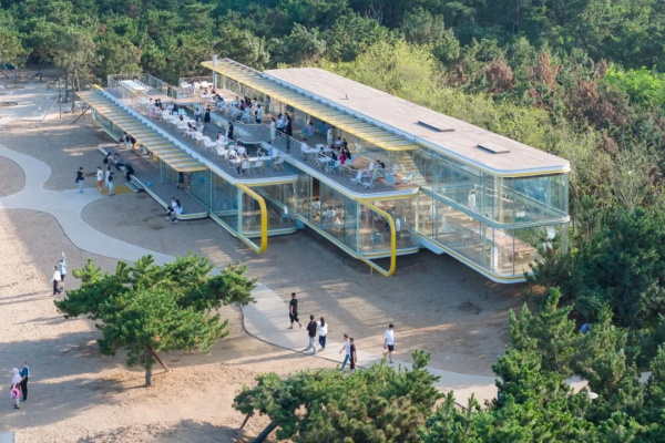 “咖啡与树”咖啡馆在日照市民中大受欢迎后,Selgascano 事务所受邀在海滩边新建一座餐饮空间,场地位于黑松林与日照海滩的交界边缘。这里自然