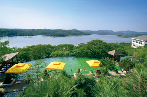 从迪拜购物中心的后门出去,就是著名的哈利法塔。塔前有一处人工湖,湖上有设计奇妙的音乐喷泉。走过一座小桥,还有一个传统的阿拉伯市场。与迪拜购物中心