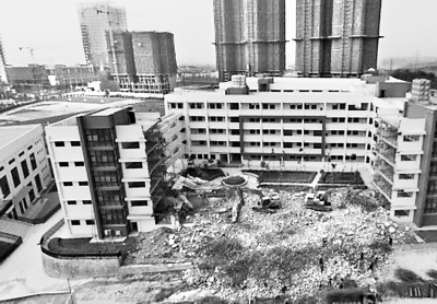 1月4日下午,广西南宁天桃实验学校荣和校区,两台大型破拆机械在拆除教学楼。据悉,已被拆除的这栋教学楼刚刚建好,但尚未交付使用。对此,校方和施工单