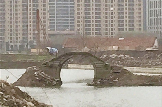 近日,绍兴当地论坛上,一组名为《浙江绍兴——清代古桥变“钉子桥”》的照片爆红,内容是镜湖新区的一座石桥,孤零零地伫立在河道中,背景是鳞次栉比的高