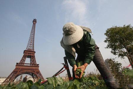 浙江省杭州市山寨版的巴黎城在杭州市郊屹立,这座铁塔总高108米,按照法国原版艾菲尔铁塔三比一的比例建造而成,建筑结构与法国那座塔保持一致。