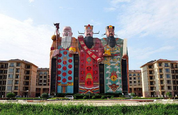 在河北燕郊经济开发区102国道边,矗立着高大的彩塑“福禄寿”叁星像,乍一看没有什么特别。然而,实际上,这个建筑是一座名为“天子大酒店”的酒店建筑