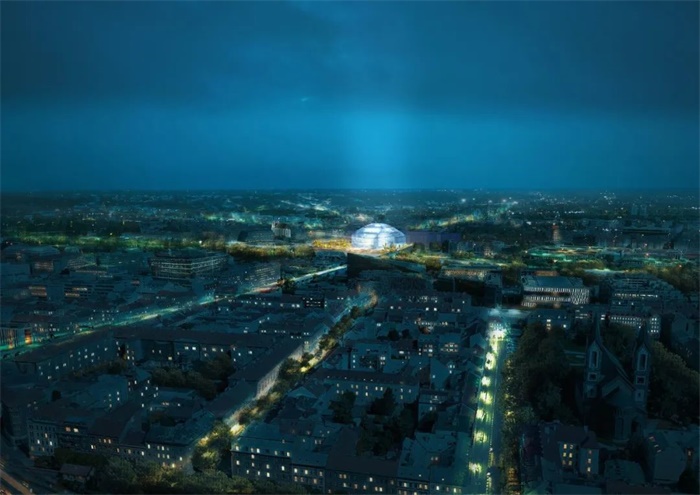 在布拉格新伏尔塔瓦爱乐音乐厅的设计竞赛中,MVRDV意图为布拉格的城市景观增添一颗瞩目的璀璨明珠。建筑整体采用高效的堆叠形式,外墙则使用回收玻璃