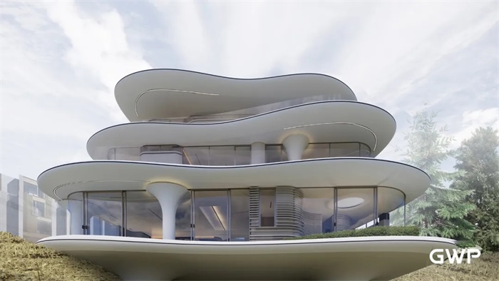 GWP团队将雪山经过光影洗礼所呈现的优雅美感作为设计灵感的来源,以行云流水的线条组成弧度的曲线,于高低起伏之间拨开萦绕雪山的云雾形成建筑的动态外