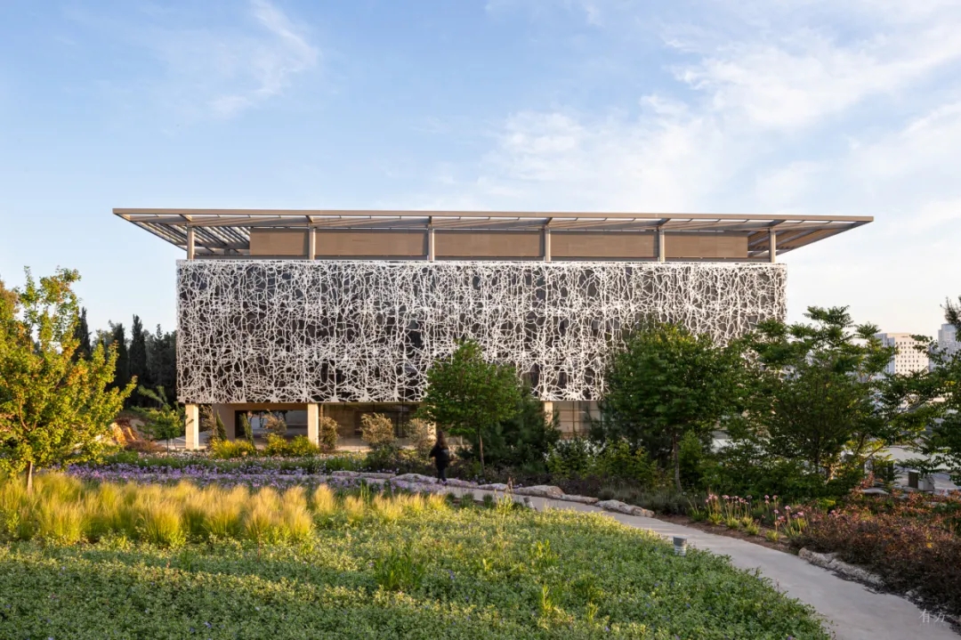 该脑科学中心坐落于耶路撒冷希伯来大学,是一处针对脑部进行科学研究的先驱性设施。在校园自然崎岖的地形环境中,项目选址经过精心规划,当通向市中心的电