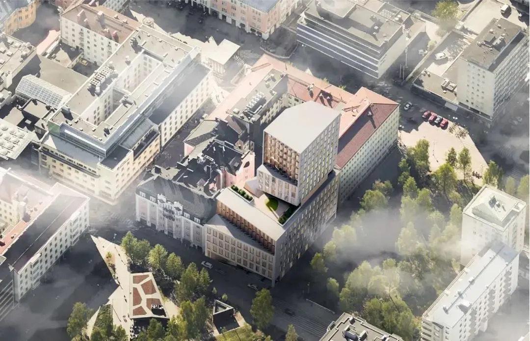竞赛的目的是研究位于奥卢合作银行总部所在地的新建筑的替代方案,该建筑包含办公和商业场所以及公寓。获胜提案通过建筑体量在不同高度的切分,不至于影响