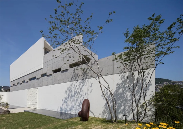 在日本,房屋只有被屋顶覆盖的部分才被计入面积。因此业主选择了一个未知但大胆的选择,家中一半的空间都不设屋顶。因此包括起居室在内,这个住宅一半的空
