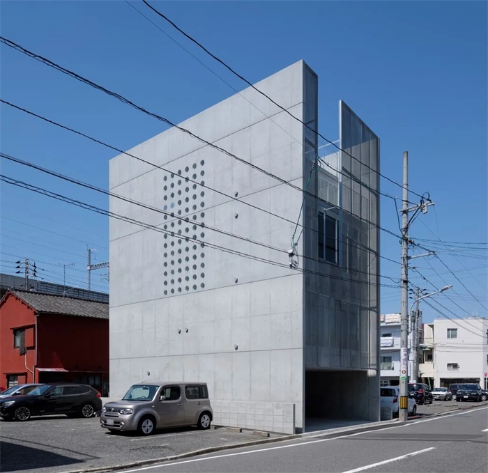 项目是一栋私宅与工作室的结合体,位于一片低层高的安静住宅区。场地毗邻公共停车场,也就是说该项目可以从各个角度被人们看到。因此,建筑师采用了不分前