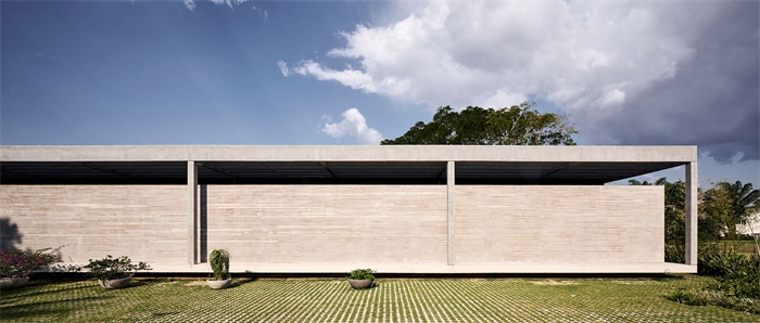 项目位于玻利维亚圣克鲁斯,隐藏在细长、郁郁葱葱的花园后方,由当地Sommet设计公司完成。这座混凝土房子名为"Casa 54",坐落于封闭式社区