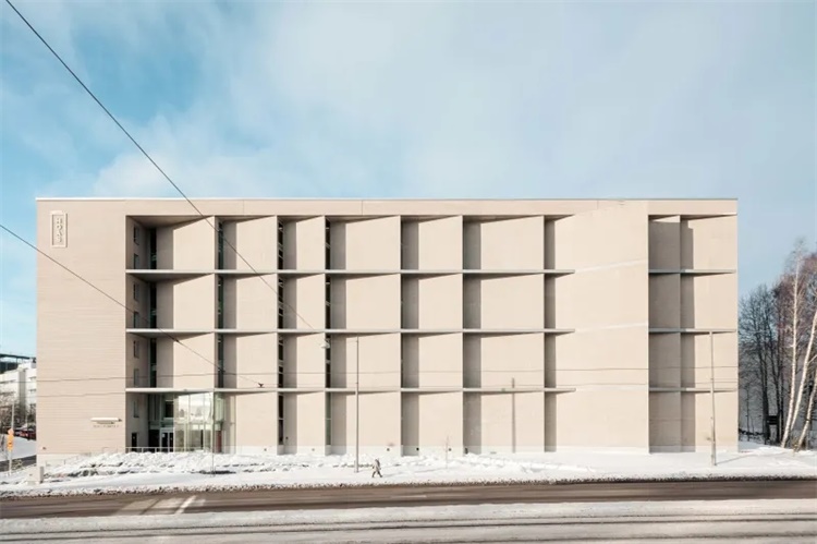 这是赫尔辛基大学Kumpula校区扩建项目。项目由PLAYA ARCHITECTS建筑事务所设计,包含公共空间和200间学生宿舍。场地狭小,位于