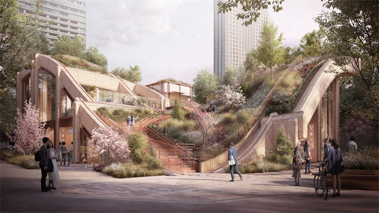 由 Heatherwick 工作室設計的“波浪形绿植凉棚”在日本东京开建,该项目旨在虎之门-麻布台(Toranomon-Azabudai)地区创