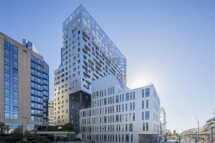 Louis Paillard在设计竞赛中,获得在办公CBD中设计住宅项目的机会。设计理念是在南侧增加开窗,醒目的“圆形突出物”打造强烈的统一感。