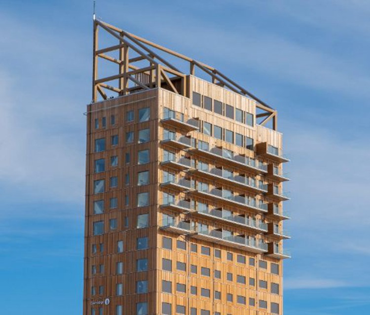 项目位于挪威Brumunddal,由Voll事务所设计,近期通过认证,成为世界最高木制建筑。项目高度达到85米,利用交错层压胶合木,该材料让设计