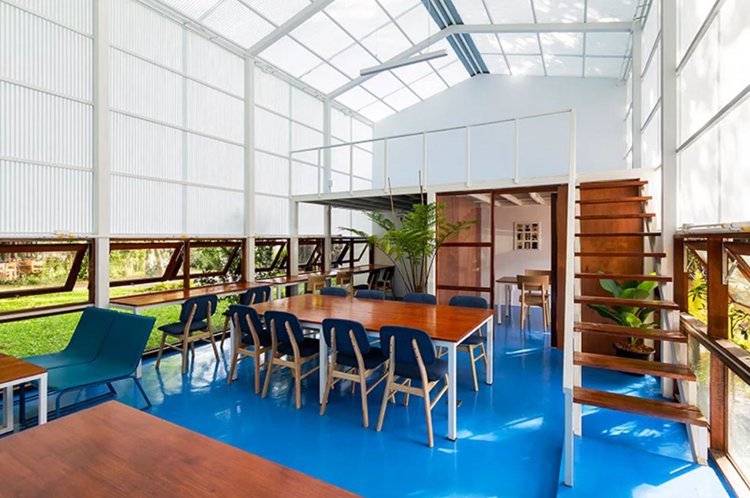 泰国Sher Maker事务所完成了Lan Din社区阅览室的设计。改项目位于旅游城市清迈,外立面覆盖了玻璃纤维板,赋予建筑半透明的视觉效果,最