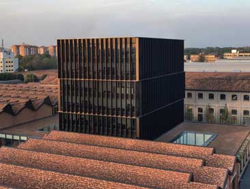 意大利Piuarch工作室将米兰一座飞机生产厂房改造成Gucci的新总部。项目对砖砌飞机鹏添加了覆盖金属遮阳板的玻璃塔。库房综合楼临近米兰Lin