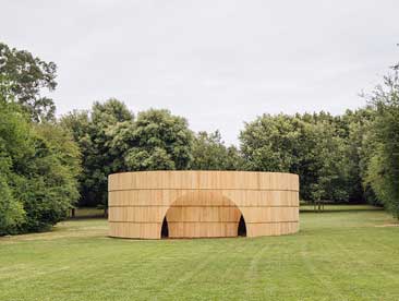 Diogo Aguiar工作室完成了一处临时环形场馆设计,可举办电影放映等活动。项目位于葡萄牙波尔图的Serralves文化馆中。该“花园馆”临