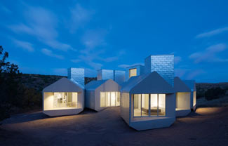MOS建筑事务所设计了位于美国新墨西哥州荒漠区域的像素住宅。项目采用银白色的SIPS(结构保温板),构成独立的住宅单元,配备了太阳能,LED照明