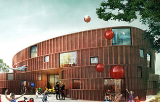 URBAN AGENCY设计了位于爱尔兰都柏林儿童看护中心。该项目面向婴儿到12岁以内的儿童。场地呈现出三角形,位于两条喧嚣道路交口,建筑设计通