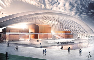 Die Resonanz音乐厅坐落于慕尼黑中央车站以西3公里,巨型混凝土结构占据了曾经的邮政大厅场地。独立式穹顶包含1600个精巧的预制构件。建